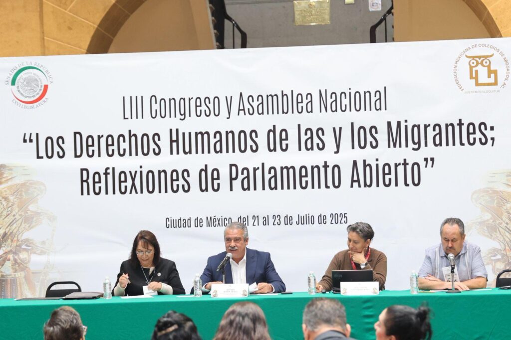 El senador de Morena por Michoacán participó como ponente en el LIII Congreso y Asamblea Nacional de la Federación Mexicana de Colegios de Abogados A.C., celebrado este martes en la Ciudad de México.