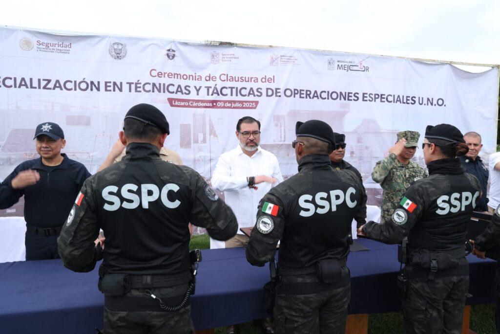 Lázaro Cárdenas, Mich.- Con el firme compromiso de contar con los mejores perfiles para salvaguardar el bienestar de la ciudadanía, 32 elementos de la Secretaría de Seguridad Pública (SSP) concluyeron el curso de Especialización en Técnicas y Tácticas en Operaciones Especiales U.N.O., impartido por la Secretaría de Seguridad y Protección Ciudadana (SSPC) a través de la Unidad Nacional de Operaciones, en la ciudad de Lázaro Cárdenas.